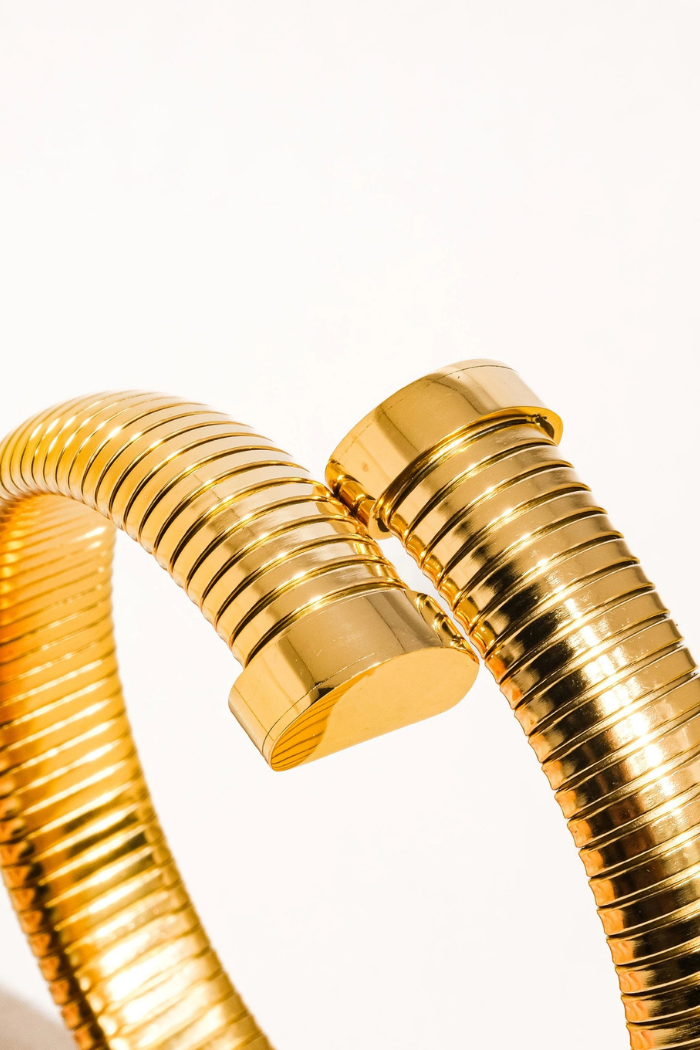 18K Gold Non-Tarnish Bold Bangle 18K Gold Plating Stainless Steel Inner Diameter: 2.75 Thickness: 0.4 - Lead-free, Nickel-safe - Hypoallergenic - Water Resistant