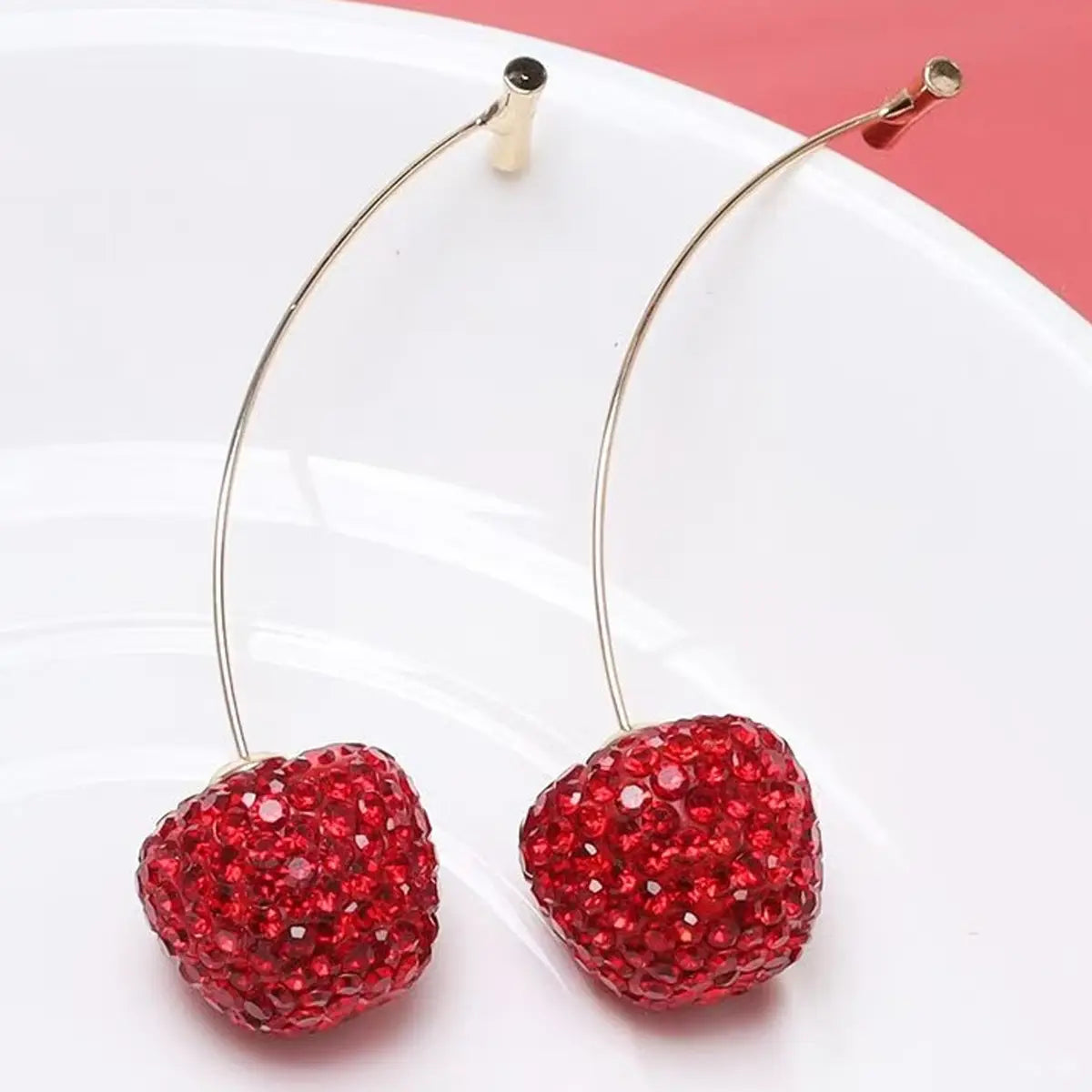 Fresh, sparkly, gold stem cherry earrings are a dazzling twist on a classic favorite. Featuring faceted crystal cherry that shimmers with every move. They bring just the right amount of juicy charm to your look. The delicate gold stems add an elegant touch, making them perfect for berry lovers, fruit fashionistas, and anyone who loves a little sparkle!