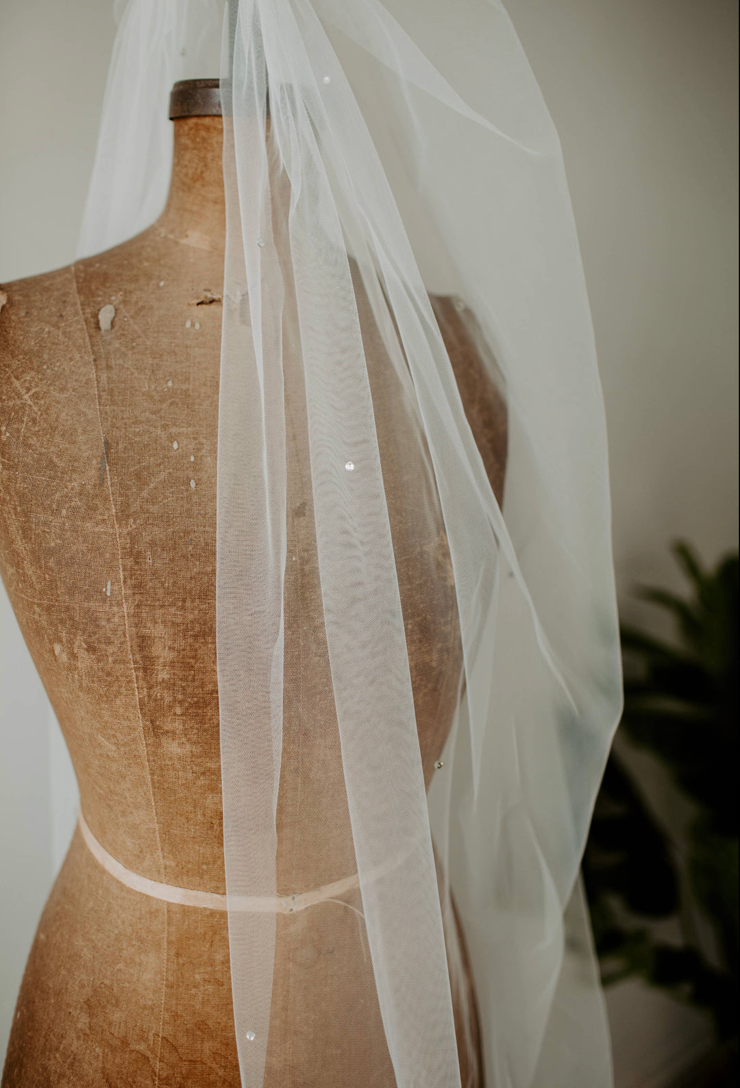 This beautiful cathedral veil with cascading crystals delivers an unforgettable statement that's classic and everlasting. The crystals catch. the light as the bride walks about. It's chic and makes a timeless statement. Made by a Mother-Daughter with a passion for creating beautiful wedding veils. Each timeless wedding veil purchased is carefully handmade and inspected for perfection.