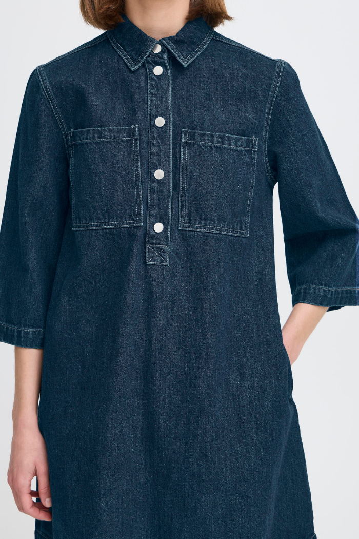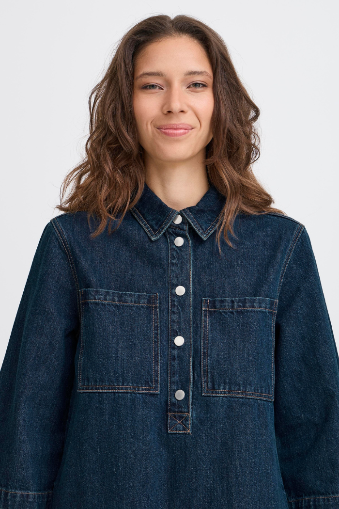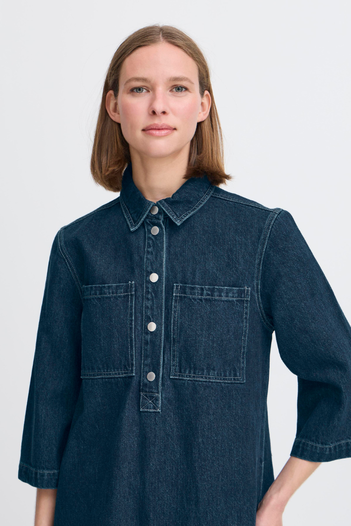 Effortless and timeless, the BYLukan Dress from b.young is a versatile denim-inspired piece that blends casual ease with polished style. Designed in a relaxed fit with a flattering 3/4 sleeve, this dress is made from breathable cotton and fully lined for comfort. The snap-button front and structured collar add modern detail, making it a staple you’ll reach for all year long.
