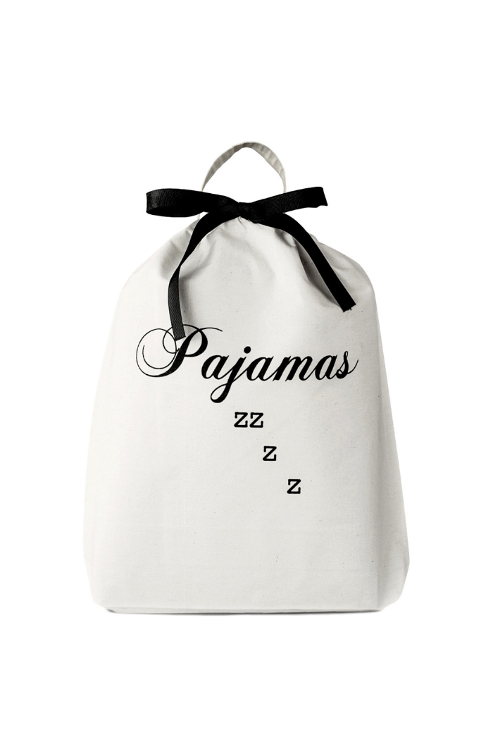 Travel in style and pack your pajamas in this handy drawstring bag! The bag will also help you keep your closet organized in-between trips. It has a handle so you can hang it on a hook at home or when arriving at the hotel.