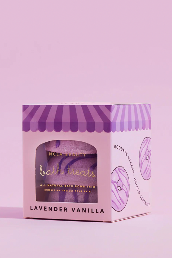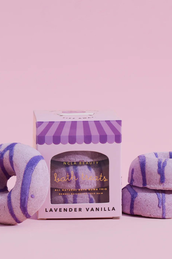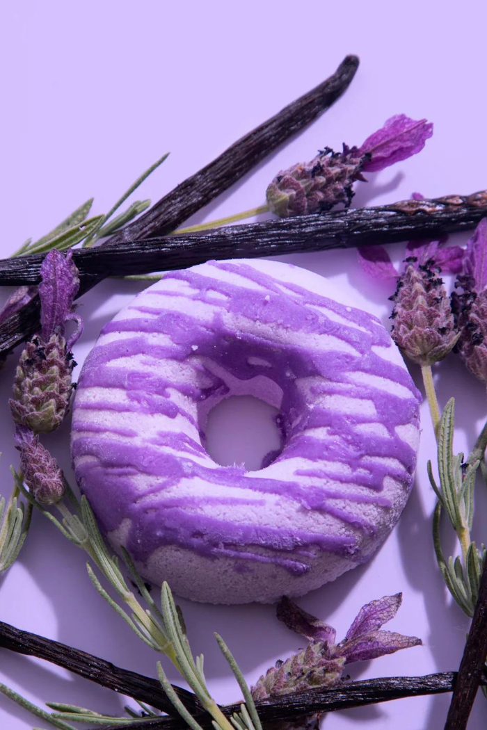 Each set comes with 3 donut shaped bath treats made with nourishing, skin-soothing, and hydrating ingredients like epsom salt, kaolin clay, and shea butter. It's also infused with an essential oil blend to bring an aromatherapeutic experience to your bath time.