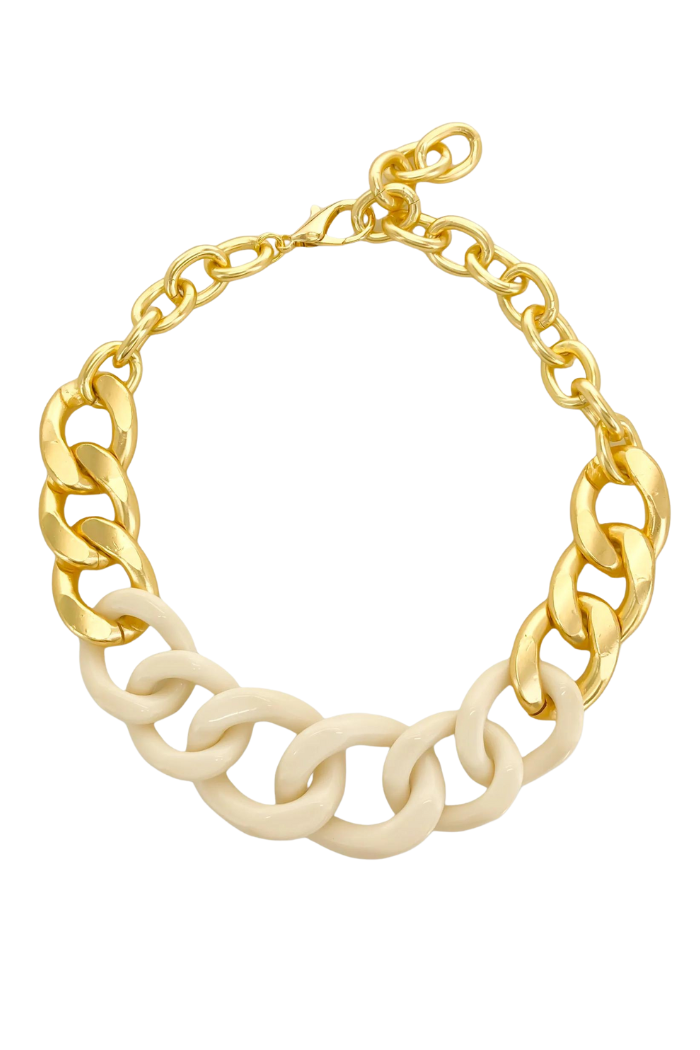 Top off any outfit with a statement! This lightweight chunky chain is a unique design featuring  flat oversized links with gold combined with enamel for a fun pop of color.
