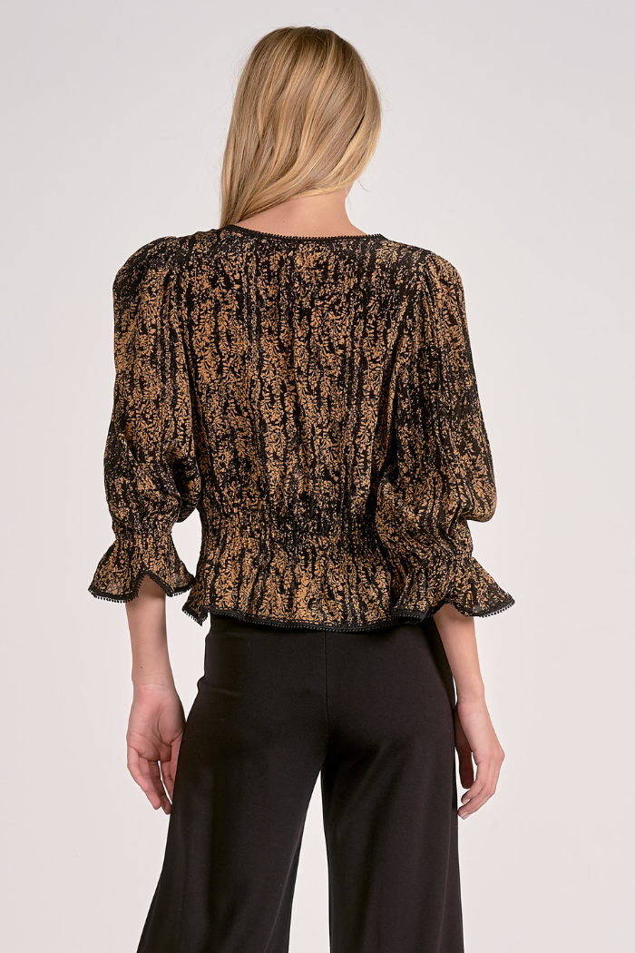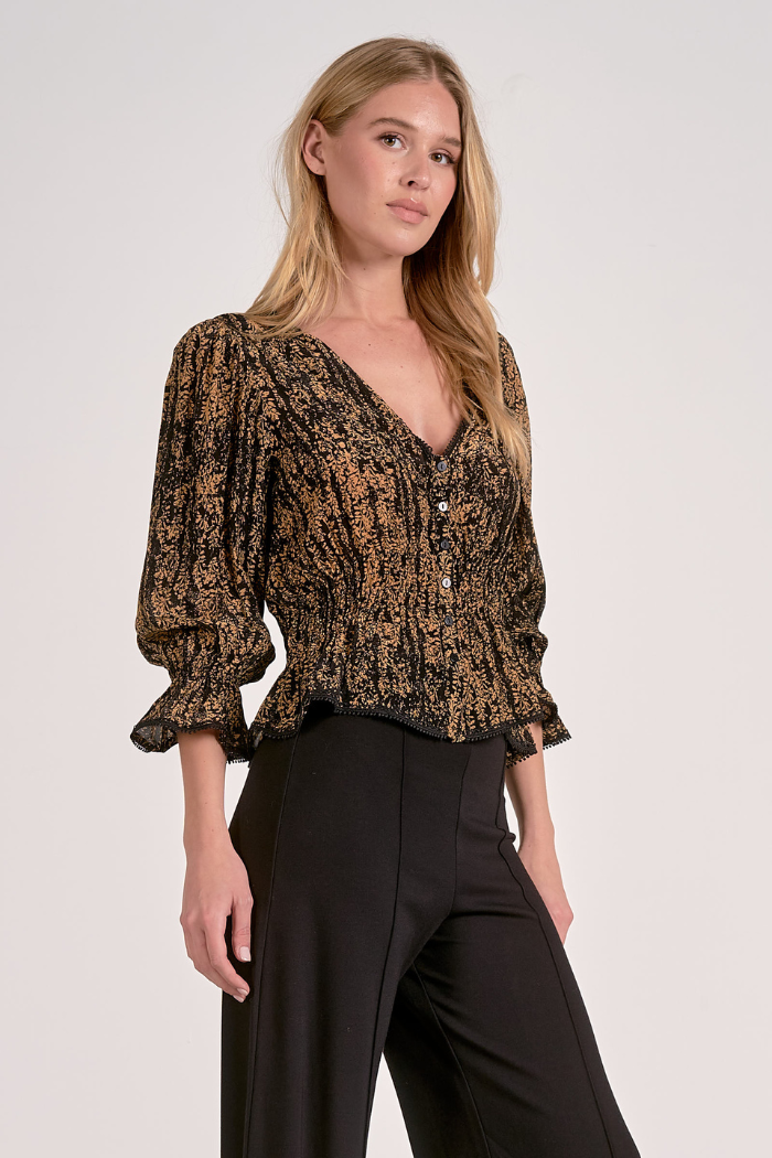 Softly structured and effortlessly feminine, the Autumn Blouse is a versatile piece that transitions seamlessly from work to weekend. Designed with delicate smocking at the waist and gentle ruffle detailing, it flatters the figure while maintaining a relaxed, comfortable fit. The subtle print adds dimension, making this an easy choice for both polished and casual looks.