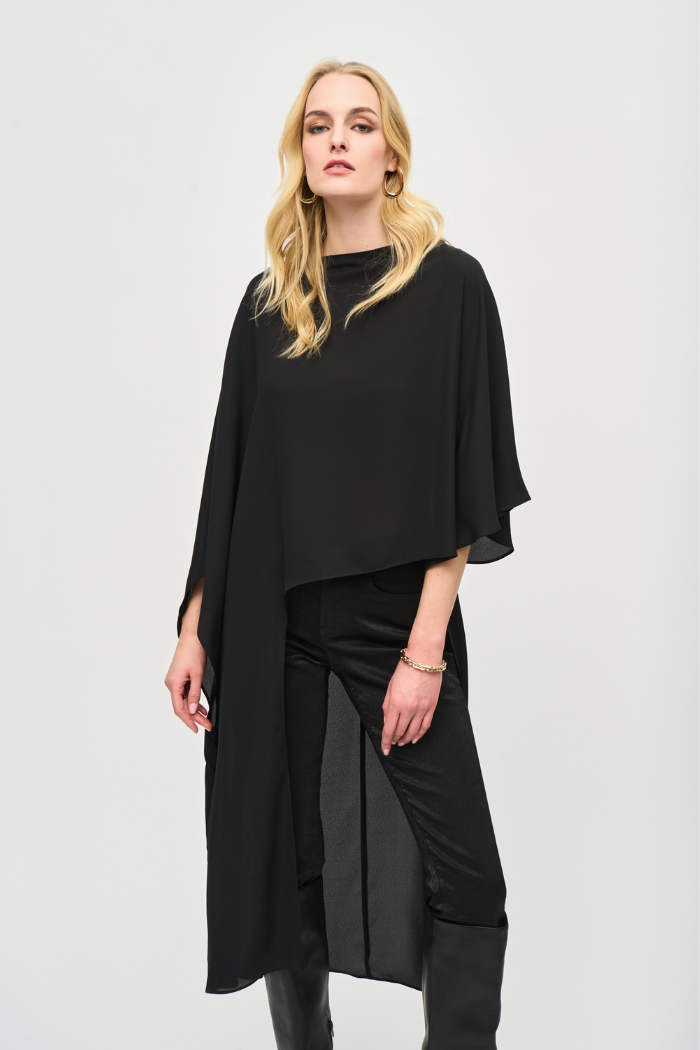 This asymmetrical top, showcasing a boat neckline and dolman sleeves, presents an elongated, lavish silhouette radiating sophistication. Its airy, lightweight georgette fabric construction guarantees comfort yet sustains a polished charm.