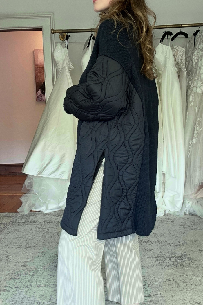Effortlessly chic and beautifully crafted, the AMS Pure Cairo Sweater Dress by Aldo Martin blends modern texture with timeless comfort. Designed in Spain, this statement knit combines cozy wool-blend fabric with quilted nylon panels for a contemporary twist on a cold-weather classic.