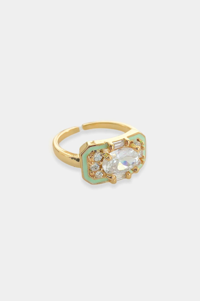 Cubic zirconia studded ring with enamel outline. Available in hot pink and mint.