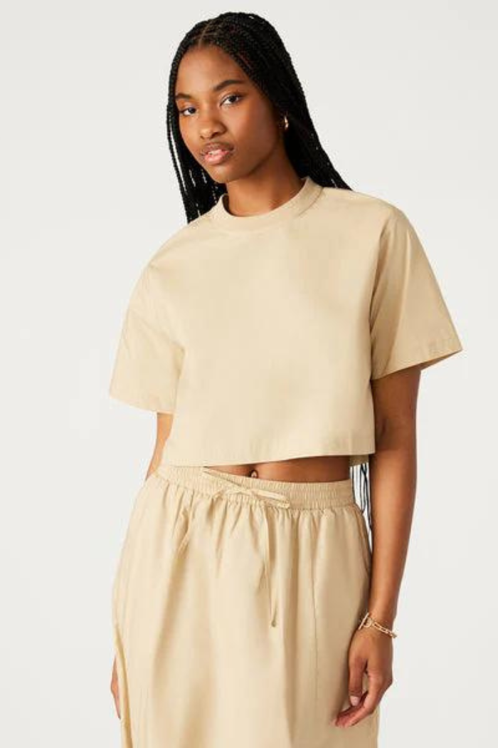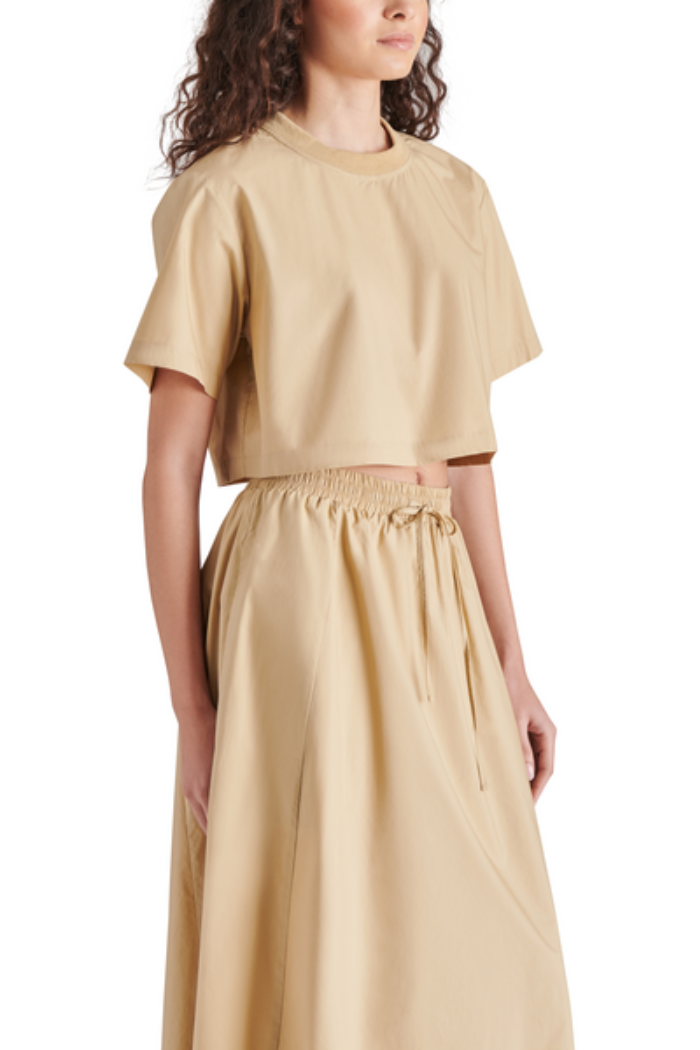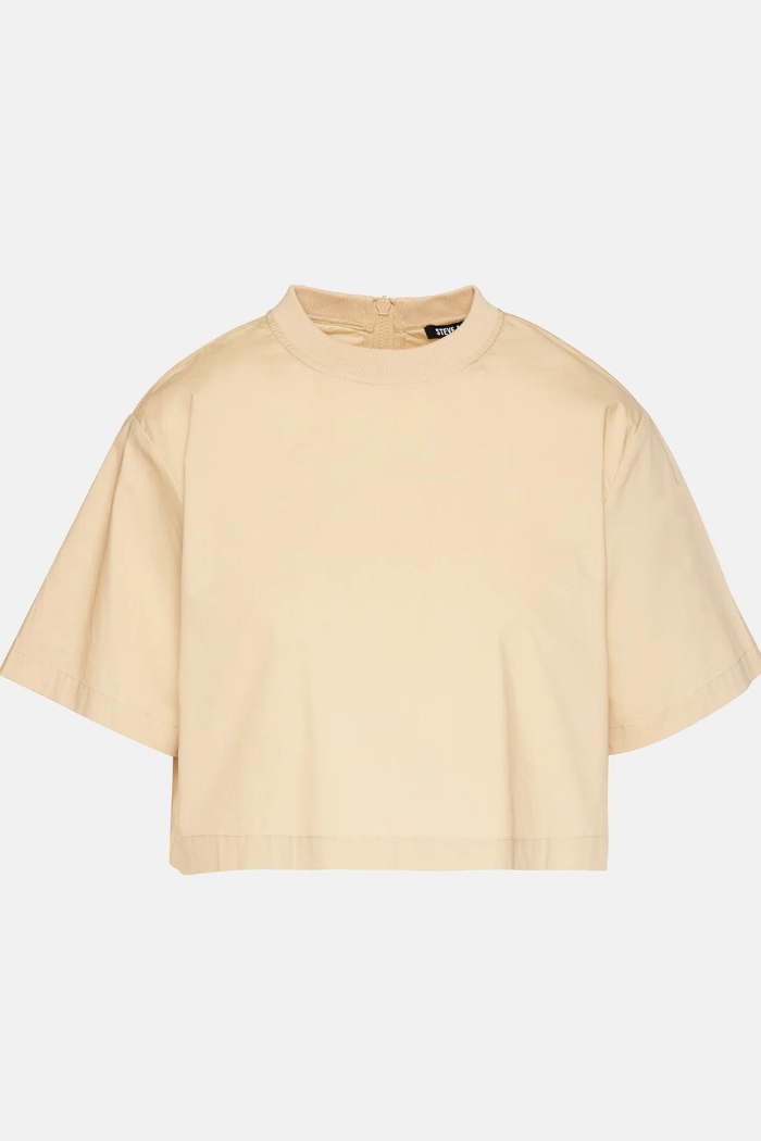 Expertly crafted with a boxy, easy fit, the SUNNY top is designed for comfort and style. The full separating center back zipper and long zipper tab add a unique touch, while the knit rib neck and cropped length complete the look.