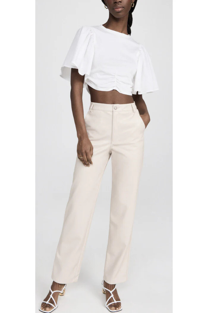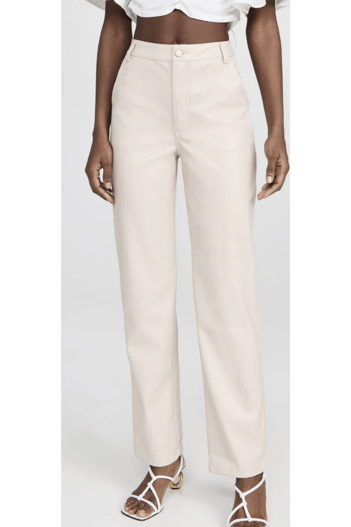For days that demand something more elevated than your usual denim, these En Saison trousers are crafted from light-hued faux leather, and feature a classic straight-leg silhouette. Go with a tonal crop top and heeled sandals to round out your outfit.