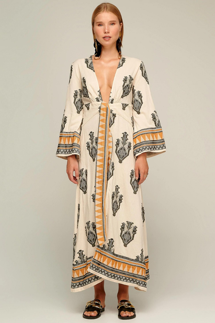 The Rapsody Kimono features wide sleeves and colorful prints with complimentary colors! Tie it whichever way you like to fit your silhouette. Wear this piece as outerwear or throw on a slip dress underneath for a stunning dressy look; or go the extra mile and wear it as a swimsuit coverup at a fabulous resort or beach.