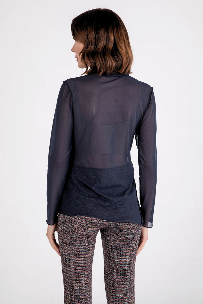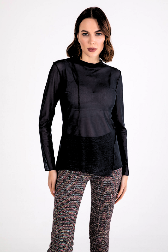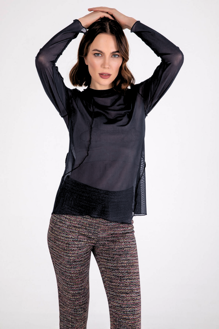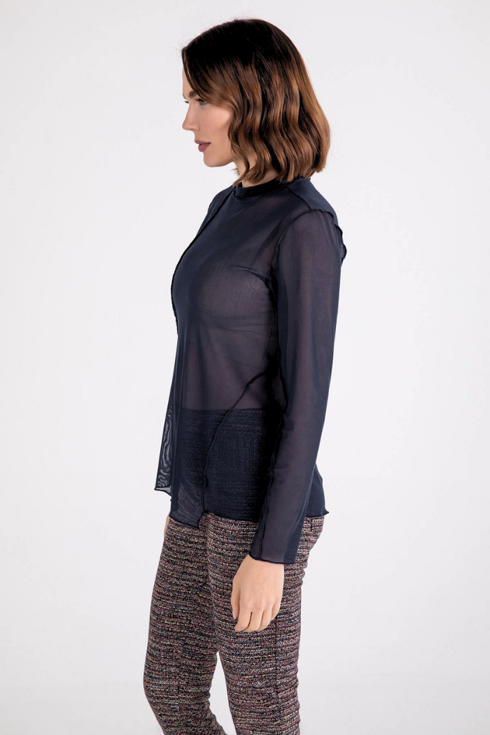 The Aragon Top is a stylish and versatile addition to your wardrobe. Crafted with a sheer material, it can easily be layered under other pieces to create a dynamic fall look. Its exposed seams add an edgy touch while the long sleeve design ensures a perfect fit. Dress it up or down -- the Aragon Top has you covered.