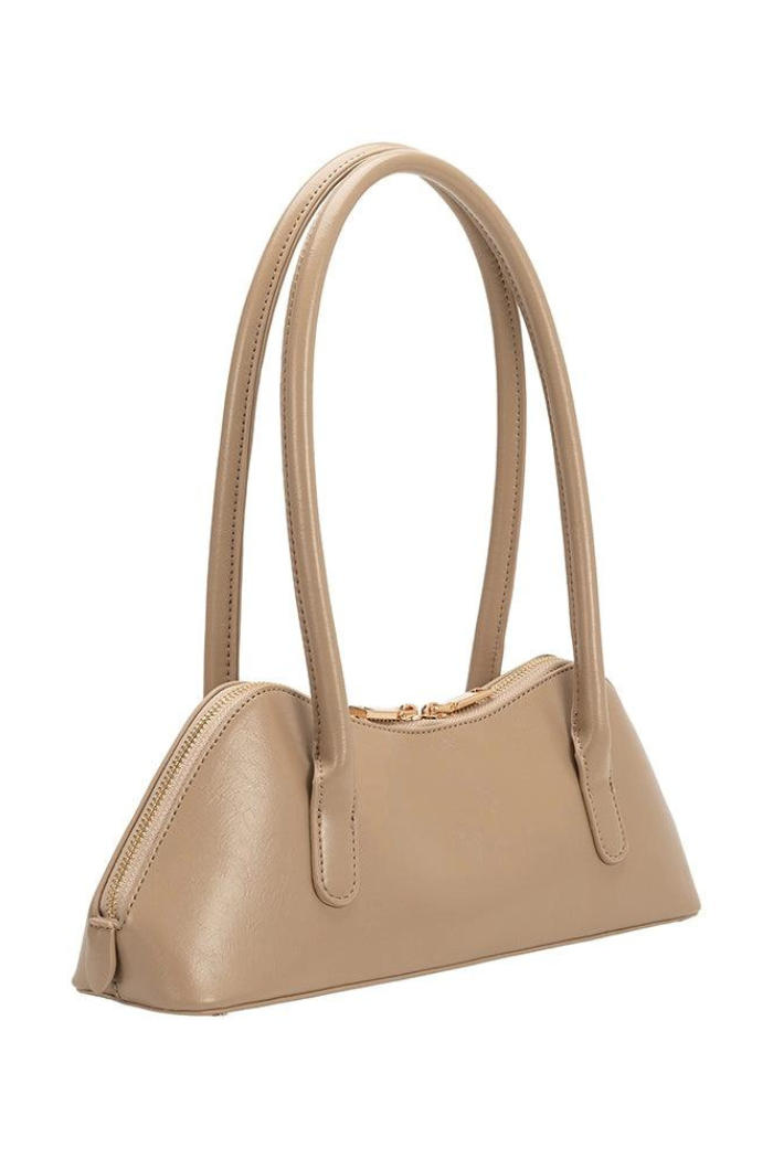 Experience effortless elegance with the Dakota shoulder bag. The curved top and clean design bring a modern touch, while the double handles provide versatility and chic style. Compact yet spacious, this small bag is perfect for any occasion, making it a must-have for your wardrobe.