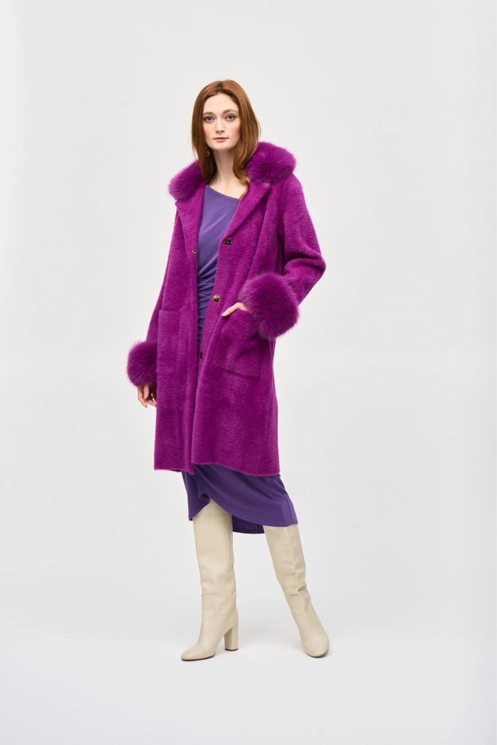 With a luxuriously soft feather yarn and faux fur trim at the collar and cuffs, this chic sweater coat is everything you want it to be; cozy, stylish, and versatile.