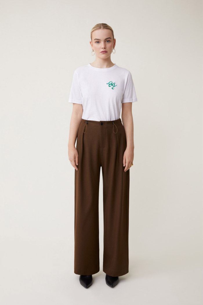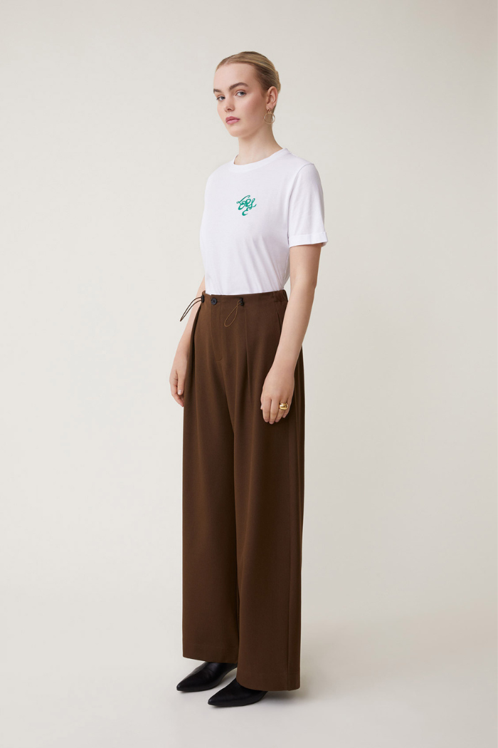 - Wide-leg trousers with drawstring