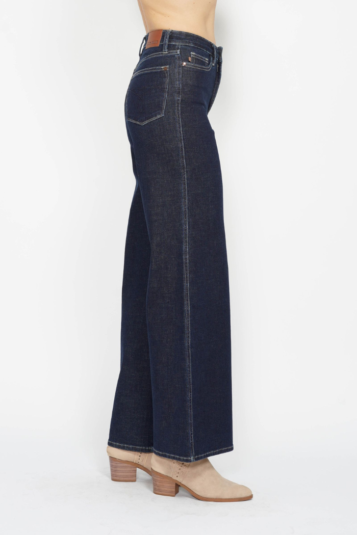 Step into timeless style with our Chic Women's High Waisted Dark Wash Wide Leg Flare Jeans from Judy Blue. Designed to flatter every figure, these jeans combine classic denim appeal with a contemporary silhouette, making them an essential addition to your wardrobe.