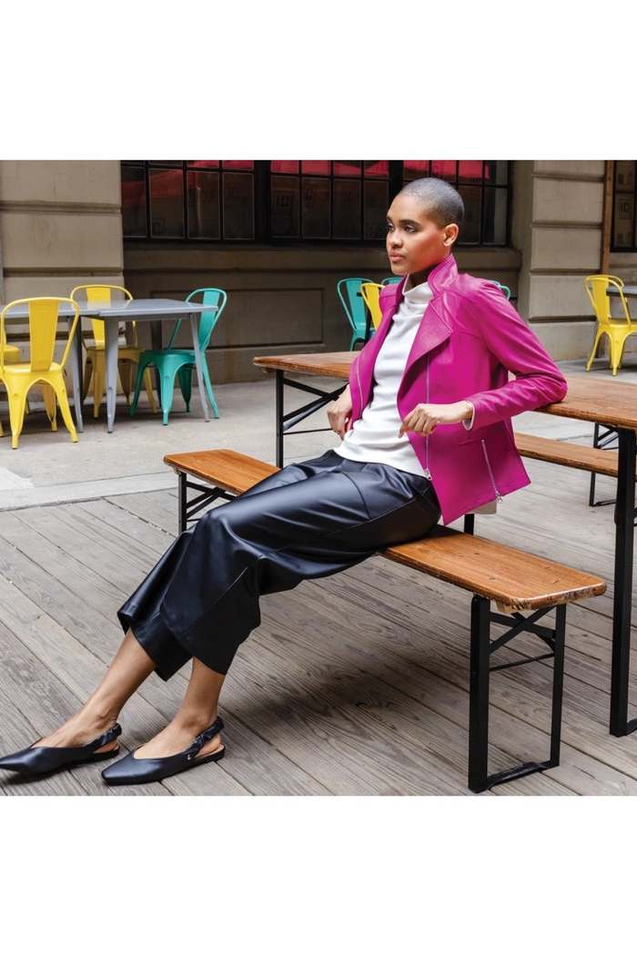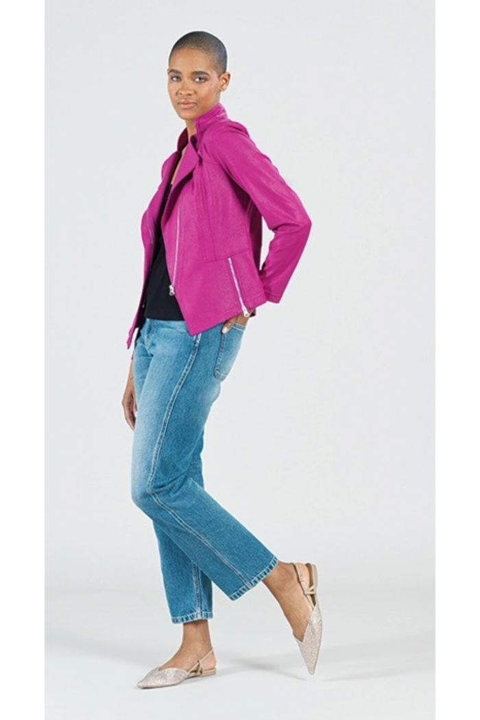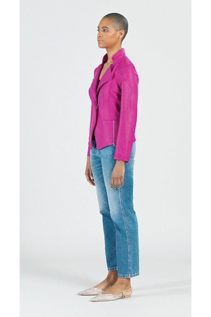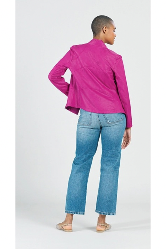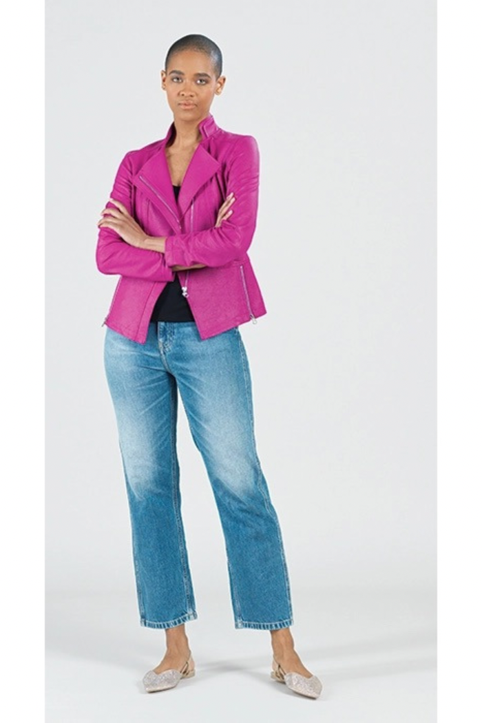 Looking for the next best thing to add to your wardrobe? Well, you'll leave no stone unturned when it comes to our Liquid Leather Signature Jacket! Made from beautiful stretch knit, extremely lightweight soft "lambskin feel" fabric with a soft matte finish. This jacket features a notched lapel with upright collar, long sleeves, silver a-symmetrical zip closure, faux pocket zipper slits as well as complimentary detailed front and backstitching.