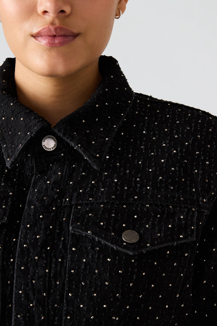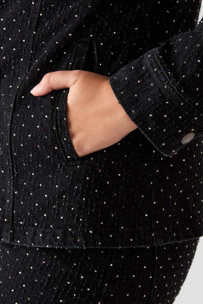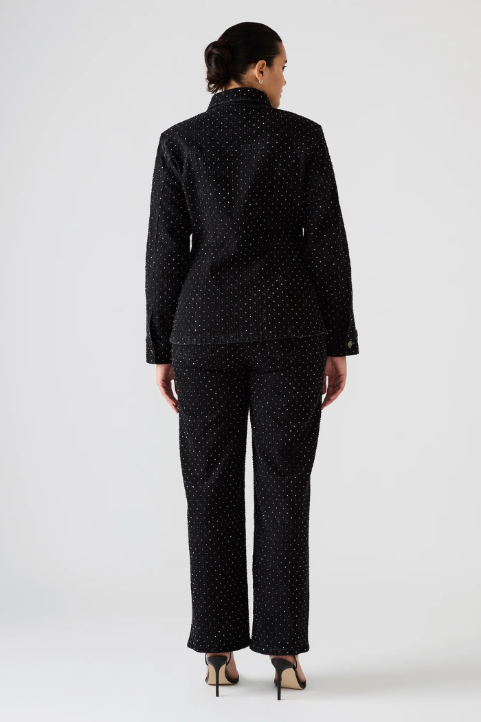 Unleash your inner star with the Parc Crystal Jacket in black — a standout piece that blends edgy sophistication with everyday versatility. Covered in glimmering crystal studs, this jacket redefines the classic denim silhouette with a touch of modern glamour. Crafted from a soft yet structured cotton blend, it’s the perfect layer to elevate everything from jeans to tailored trousers.