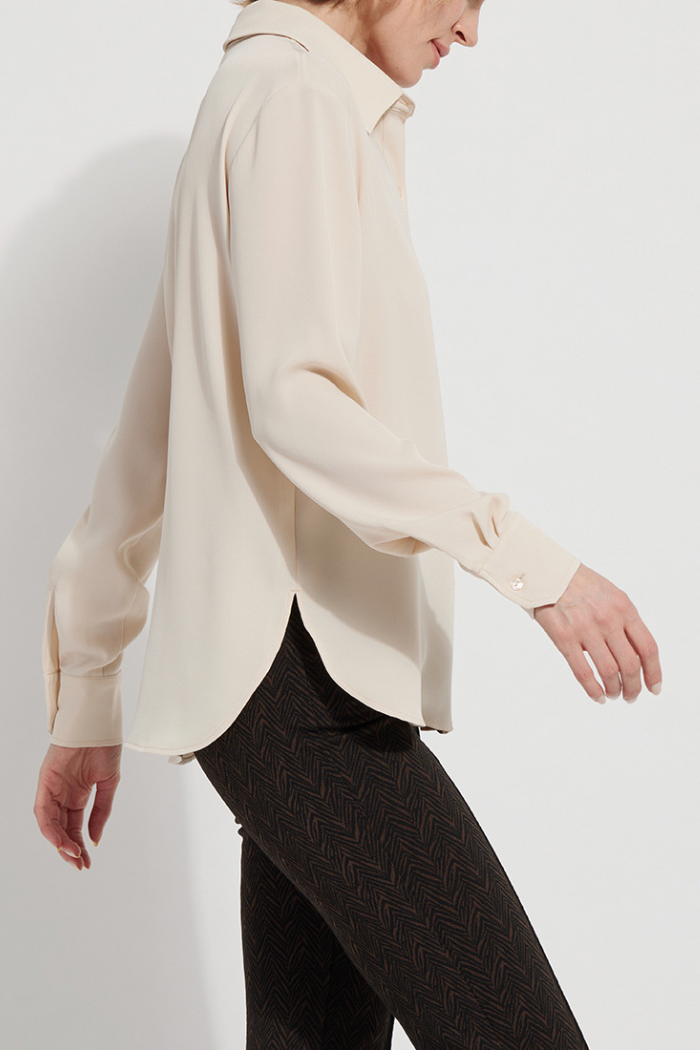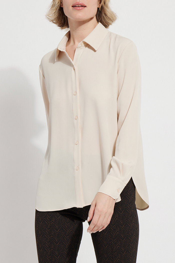 Coming in neutral shades, the Lyssé® Parker Button-Down Shirt offers you a flattering look with a slimmer fit and endless styling options. It is soft, drapey, and crafted in a stretch-blend fabric for superior comfort throughout your day. It is designed with a classic shirt collar, long sleeves with crisp buttoned cuffs, and buttoned front closure. Wear it tucked or untucked!
