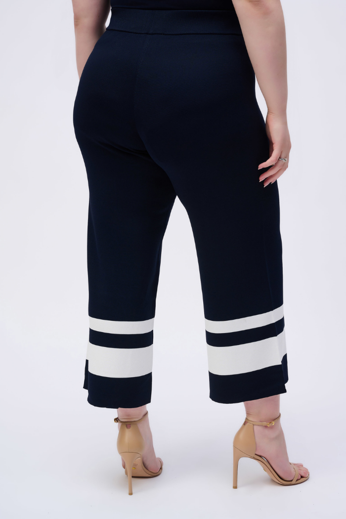 Crafted from a lightweight sweater knit blend, these pull-on culottes exude coastal expressions with their nautical-esque stripes and easy-breezy movement. A wide elastic waistband ensures perfect comfort for strolls down the boardwalk.