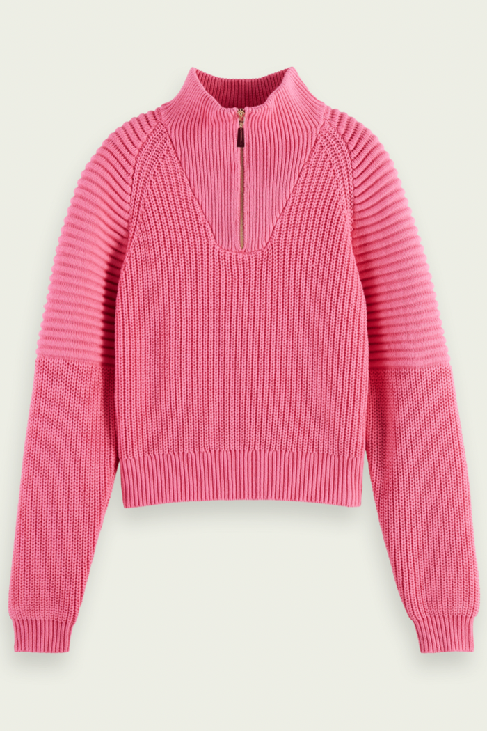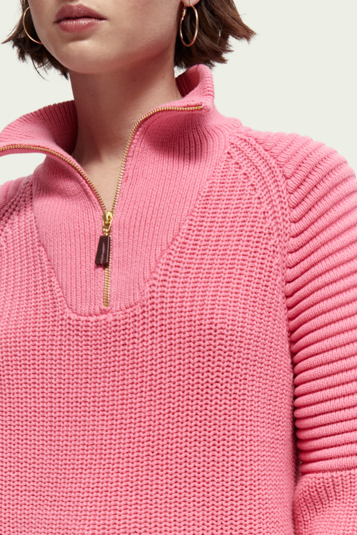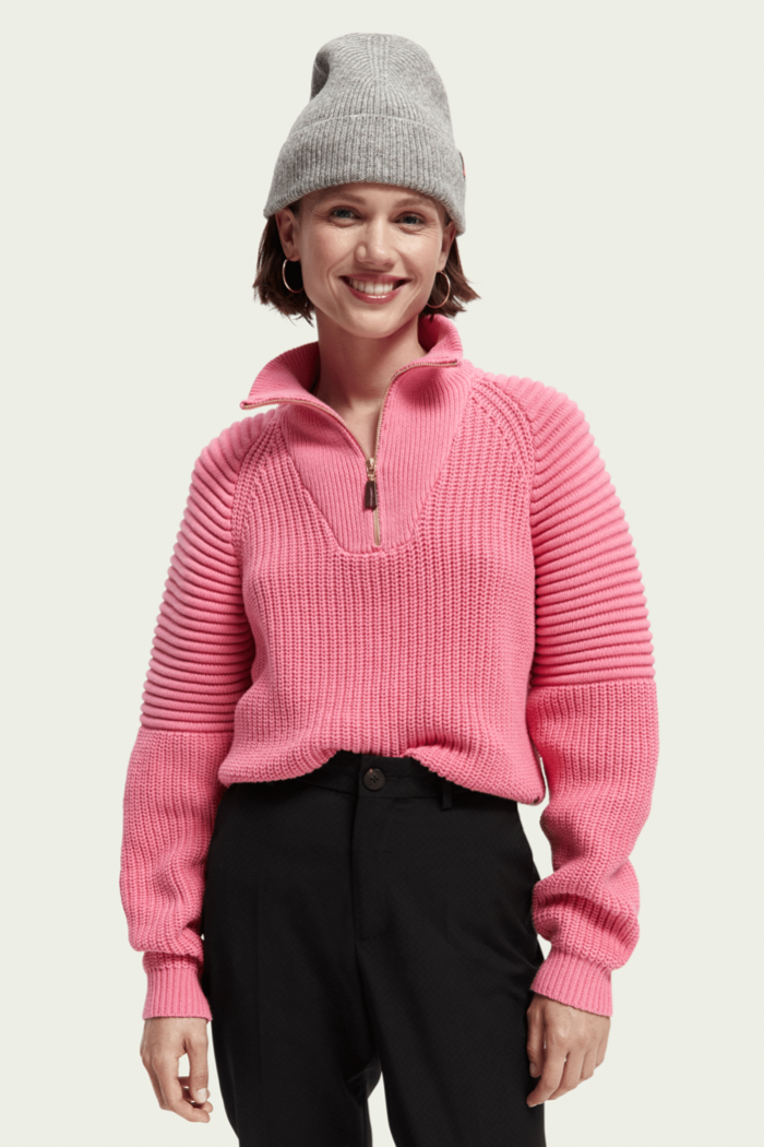 The classic sweater is a favourite in any collection. Featuring a thickly knitted design and half-zip closure – this style supplies comfort and warmth for day-to-day wear. Partially made with organic cotton (60%): non-GMO seeds are grown on land free from pesticides and synthetic fertilisers, lower water use and farmed using crop rotation, which is better for soil health. This is a blend, fabric composition on care label and listed in highlights.