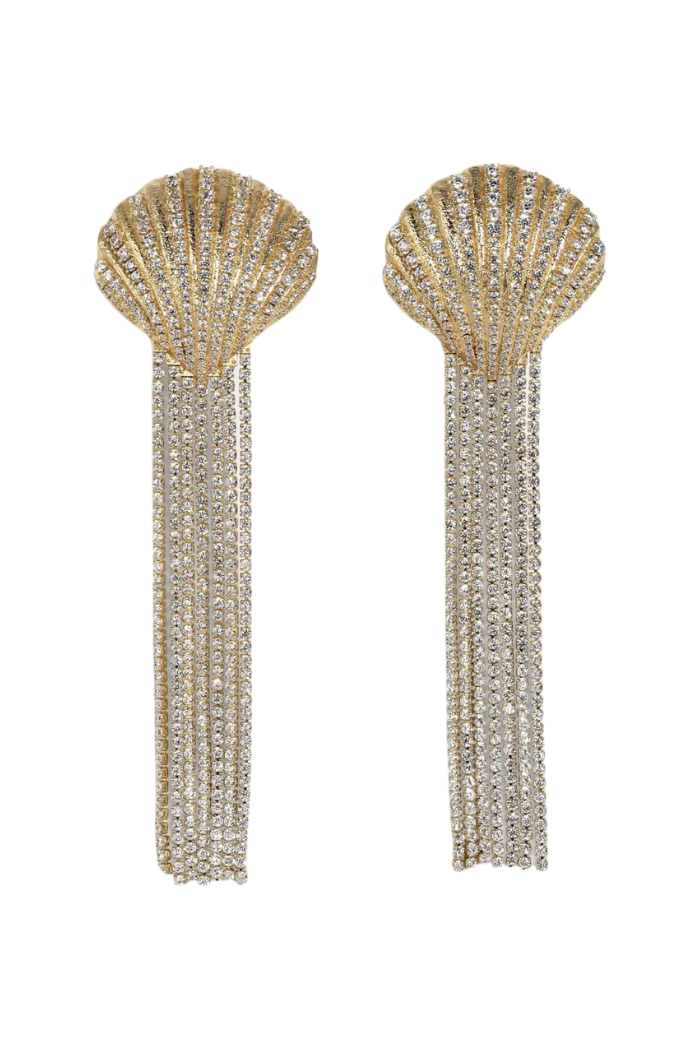 These are stunning earrings. They are 14kt gold plated brass with beautiful rhinestones and are 3 inches long. Earrings have post-clip style fastening for pierced ears.