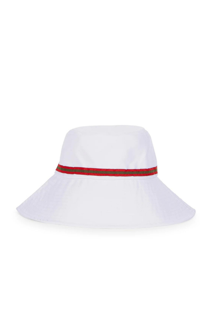 - Medium brim sun hat featuring interior circumference adjustor tie.
