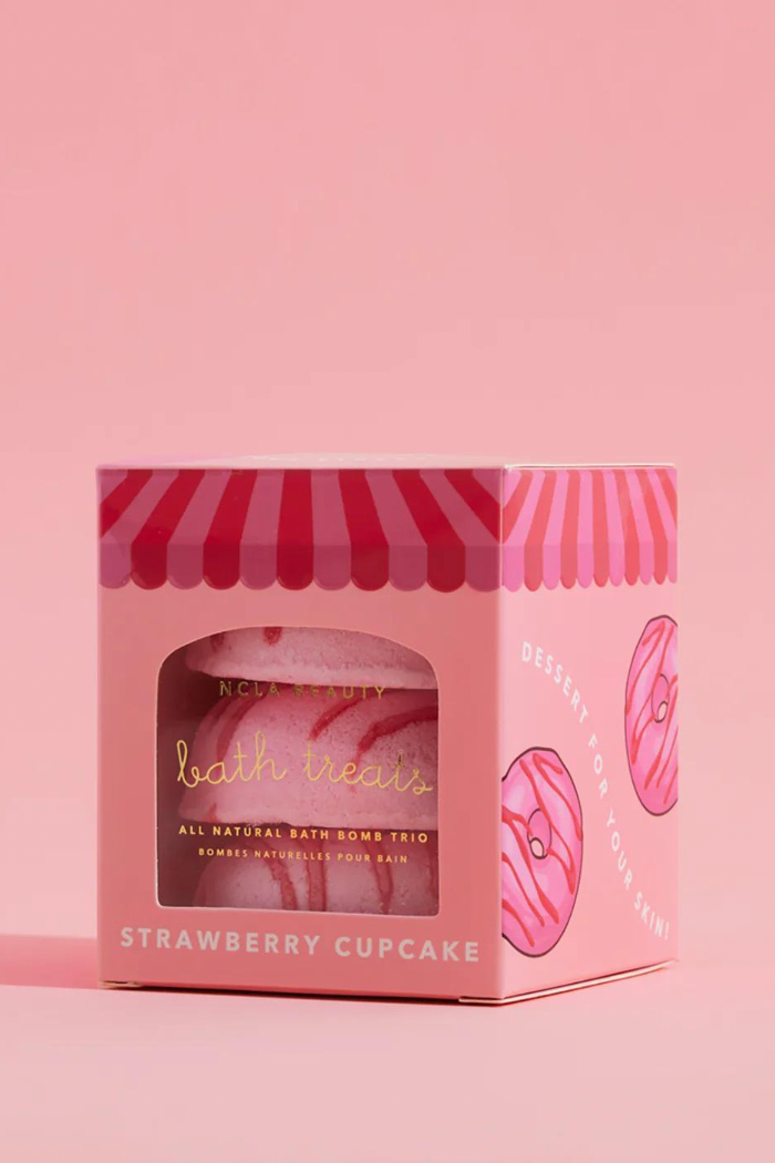A hand made bath bomb trio that will leave skin ultra soft and smelling delicious! This strawberry cake scent has notes of sugar, strawberry, and sweet fresh cake! Sit back, fizz, and relax!