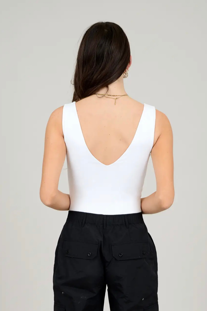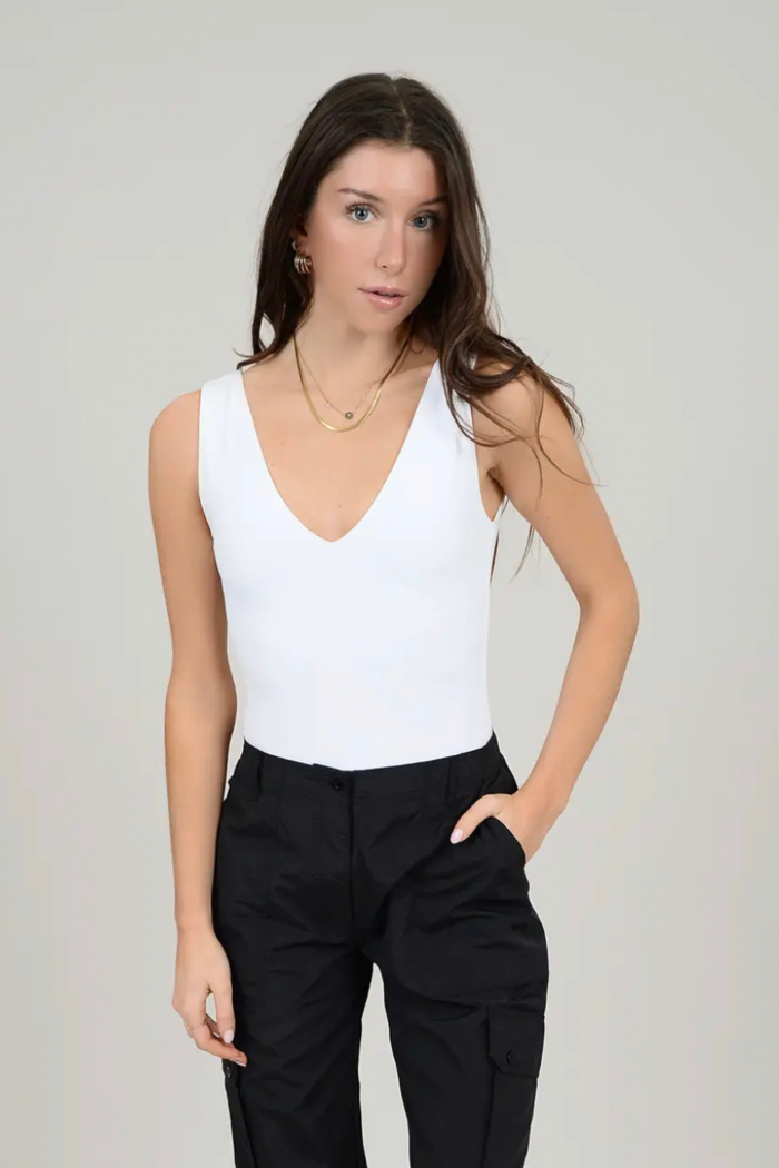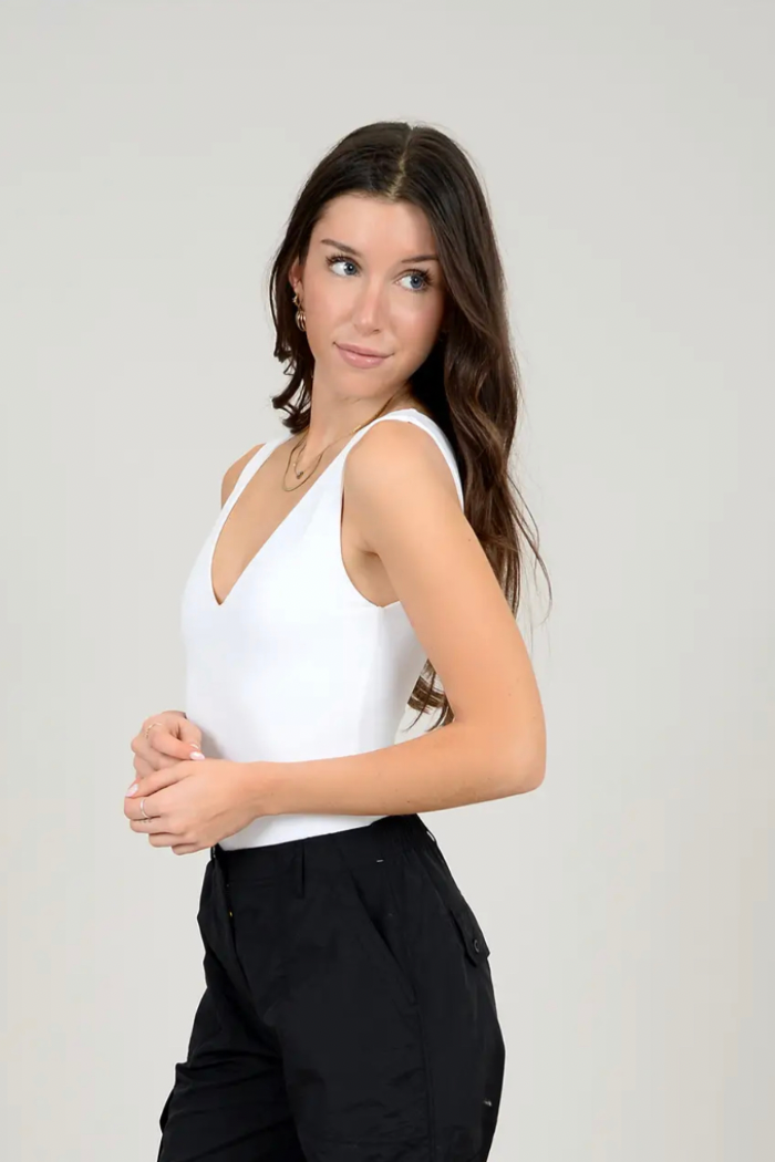 Let's just say, your wardrobe needs this. The the Valentina Double V Bodysuit is the ultimate basic your wardrobe has been missing. It is made of super-soft sleek fabric that is double lined- it's supportive, holds you in, and looks great as a base layer.